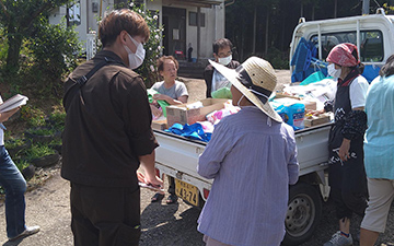 災害物資を各集落に届ける際に行ったニーズ調査の風景(球磨村プロジェクト/2020)