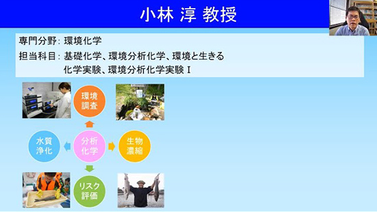 私たちの身の回りには多くの製品があふれています。これらの製品を作るには、さまざまな化学物質が使われています。世界中で日々、新しい化学物質が作られていますが、これらの化学物質あるいは過去に環境中に排出された化学物質が、人間や動植物に悪い影響を与えないようにしっかりと管理する必要があります。本研究室では、私たちの暮らしや産業と環境とが調和した社会づくりに貢献するため、水環境や生物中に含まれるさまざまな化学物質を高性能な分析機器で調べています。有害な化学物質が水環境中にどのくらいの濃度で存在し、どのくらい生物に濃縮されるのか、などについて野外調査に加えて実験室での実験も組み合わせて調べています。