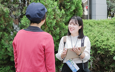 中でも、学生生活で最も印象に残っている思い出は、大学1年次の夏休みを利用し、姉妹校である韓国の祥明大学校へ短期研修に参加したことです。当時、韓国語を履修していたこともあり、友人と一緒に研修に参加しました。研修期間中は、現地の学生と交流する機会や伝統文化に触れる機会に恵まれ、有意義な時間を過ごすことができました。しかし、研修中に現地の学生と会話をしている中で、「熊本や日本の魅力について教えて欲しい」と言われ、うまく答えることができなかった自分自身に情けない気持ちになりました。そのとき、「もっと熊本や日本のさまざまなことを知りたい!もっと勉強しなければいけない!」という思いがあふれてきました。この経験を通して得た「知りたい!」という思いが、今の職業である「記者」にもつながっているのではないかと感じ、印象に残っています。