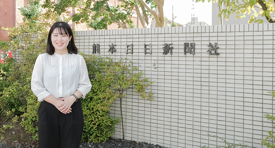 「国語科の教員」になりたくて大学に入学しましたが、大学3年生の夏に「報道記者になりたい」と思うようになりました。きっかけは、弊社のOB記者が文学部生を対象に開講した「アカデミックスキル」という講義です。その講義では、「外国人との共生」をテーマに教育、医療、福祉、選挙権などの外国人が日本に暮らす上での課題を調べ、発表をしました。私は外国人児童生徒の教育をテーマに、教育現場ではどのように日本語教育が行われているのか課題は何かを探るため、八代市の外国人児童生徒に日本語を教えているボランティア団体を取材しました。取材を通して、外国人への日本語支援の中で、子どもへの日本語支援は後回しにされてきたということを知りました。子どもは未来を担う存在であるのに、外国人児童生徒への日本語支援はなぜ後回しにされてきたのかと疑問に感じ、記事を書くことで、「子どもたちが育つ環境を整える架け橋になりたい」と思い、記者を目指しました。