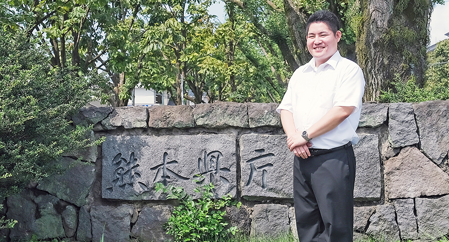 私は今年の4月に熊本県職員として採用され、市町村課に着任しました。市町村課は、県内全ての市町村で一定水準の行政サービスが提供できるよう、市町村間のバランスをとる重要な役割を担っています。その中で私は、市町村の地方創生交付金を活用した事業を実施するため、事業計画の策定支援等を行っており、「地方創生」を推進しています。