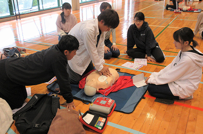 全学部の1年生が必修の「もやいすとジュニア育成」は、「地域」と「防災」のコースに分かれており、そのどちらかを履修します。